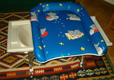 Geuther Varix Luxus,dreifach höhenverstellbar, Wannenhalter kann seitlich herausgezogen werden, mit Ablageschale für Wasch+Wickelutensilien,neuwertig, NP ~110,-